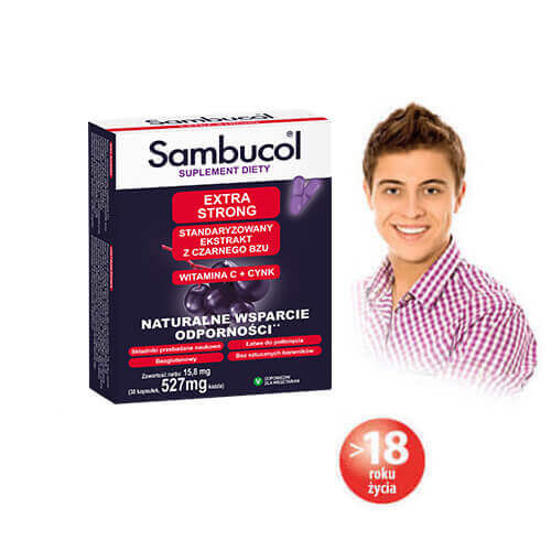 | Standaryzowany ekstrakt z owoców bzu czarnego, w tym polifenole antocyjany | 127mg 32 mg 8 mg | 254 mg 64 mg 16 mg
